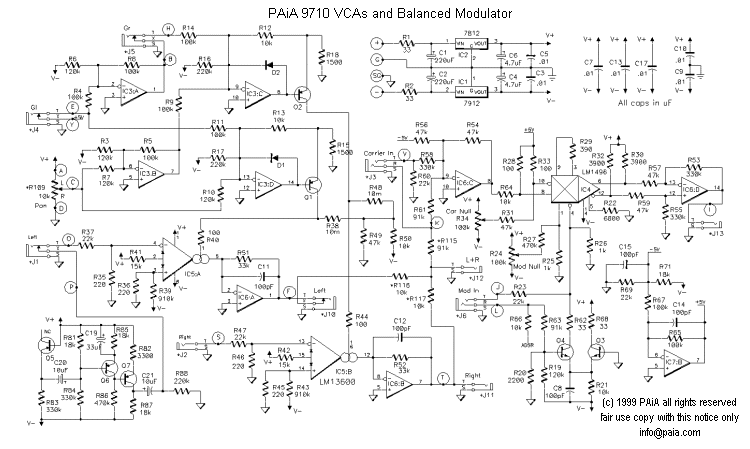 The 9710 actually contains two VCAs, along with a “balanced modulator” (a